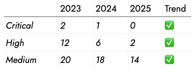 “Over three years, we’ve reduced high-severity findings by 83% and improved our remediation speed by 73%. Our security investments are measurably improving our risk posture.”