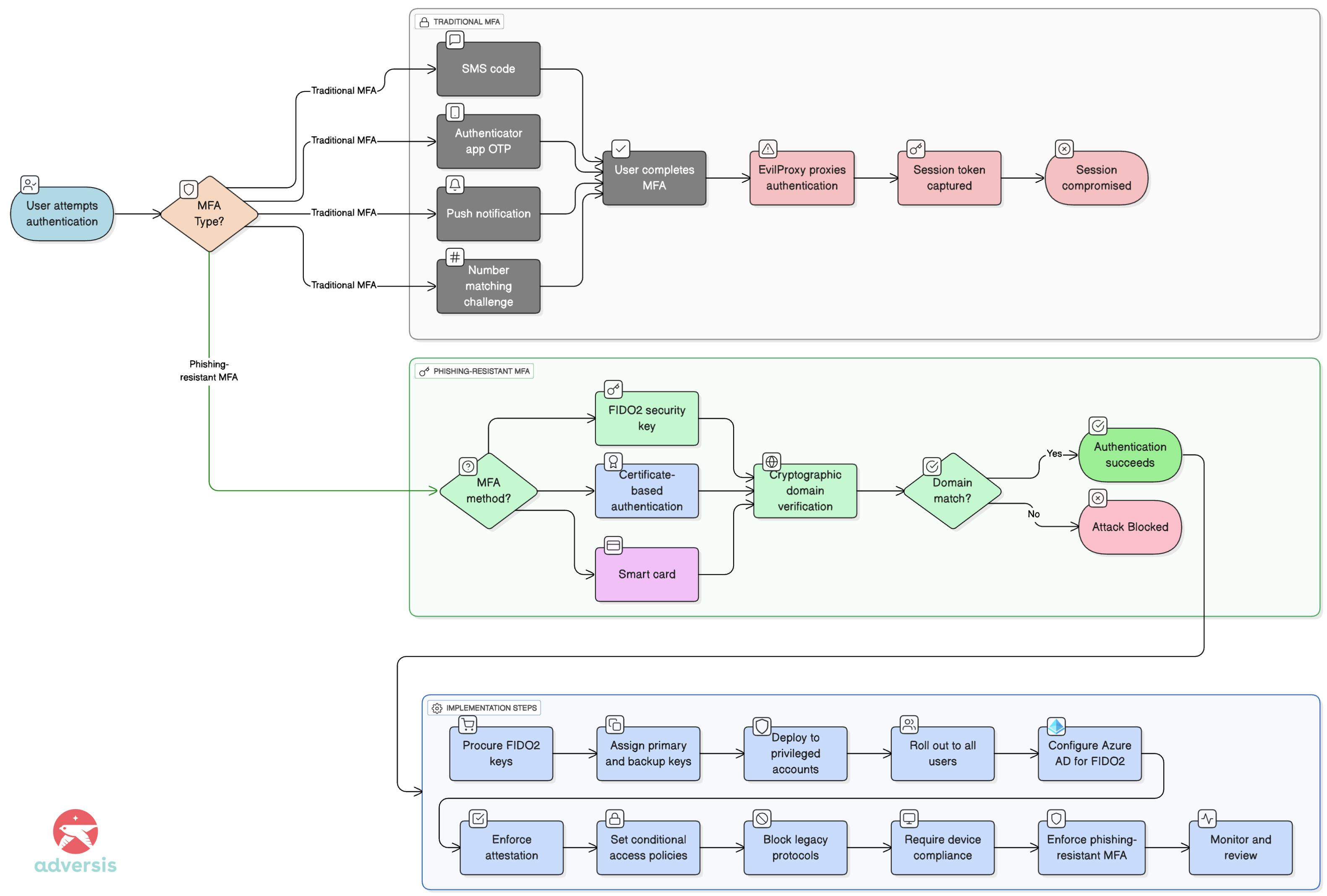 The critical mistake is making phishing-resistant MFA optional. When traditional MFA methods remain available, users choose convenience over security, and attackers simply wait for users on less-secure methods.